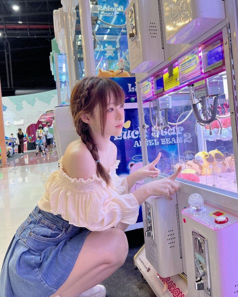 夹娃娃机前有让人更想拥有的!眼前这位萌甜度满点的妹子就是【aryumi】,棕色的秀发绑着可爱的辫子,完全能衬出那张充满胶原蛋白的无瑕脸蛋,蹲在娃娃机前的模样露着性感小香肩,无辜无害的眼神让人一眼着迷,殊不知一起身的瞬间,才知道身材为之凶猛!