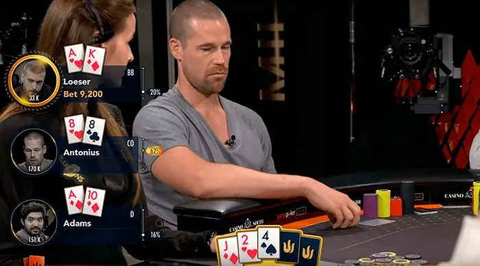 当A或K的听牌已经Miss时,你不该加入战局。如果有人有拿到Set,你会损失惨重。只有当每个人都过牌并且转牌是一张A时,才能进行价值下注。你需要非常小心对手的任何动作。鉴于玩家持有强A的可能性很高,对手很少会用比三条或两对差的牌加注。