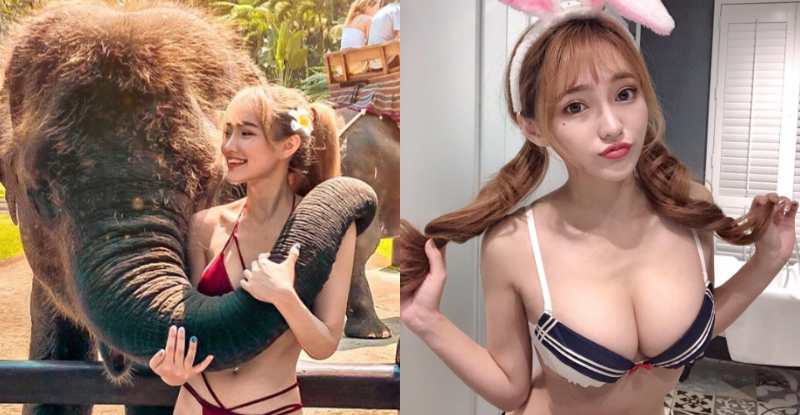 JKF女郎Donna奶妹還是個現役大學生,甜美可人的魅力除了粉絲無法抵擋外,連大象都無法招架,甚至伸出長長的鼻子緊緊纏繞Donna奶妹的巨乳蜂腰身材,可惡我也好想當那隻大象啊!