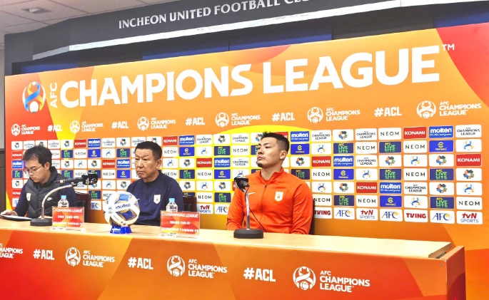 北京时间10月24日15:00,亚冠联赛小组赛G组第三轮仁川联队与山东泰山队赛前新闻发布会在仁川足球场召开。
