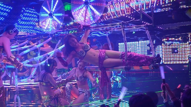 (這張配圖是新宿的「機器人酒吧」,畢竟脫衣舞吧都是禁止公然拍照的)作者恩佐表示,在進入店內前,你會先需要支付5000日元左右的入場費(約台幣1500元),在這之後,你便能找個好位置欣賞表演,而且不需要額外的小費。在這些地方,你一次可以看到4~5位脫衣舞孃一起上台,她們會或獨自或一起表演個4、5首歌。和全世界的脫衣舞吧一樣,一開始她們的舞蹈充滿藝術性的華美,但隨著衣服一件一件脫下,她們最後會大肆展露全裸(或接近全裸)的身體。
