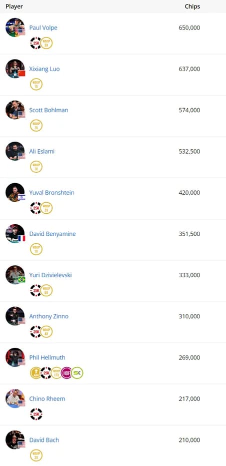 以下是筹码前十强名单: