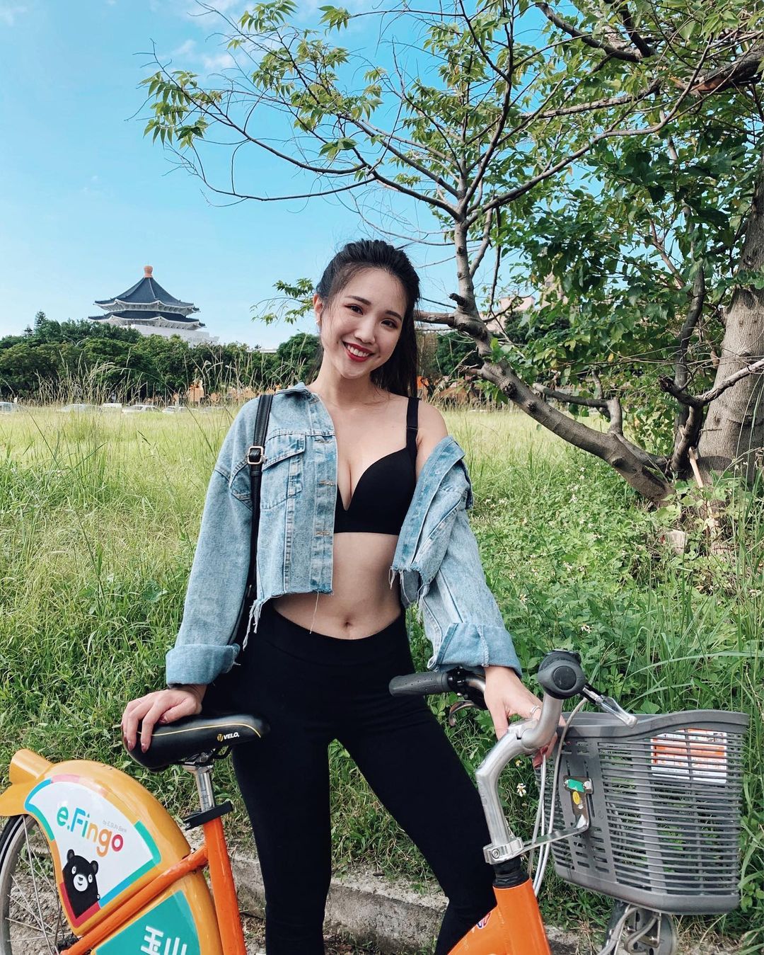 像是穿著爆乳內衣+牛仔外套,不光是秀出白嫩飽滿的美乳,也露出有著馬甲線的小蠻腰,運動率性和性感兼具的模樣騎起Ubike瞬間成為城市裡最美的一道風景線啦!