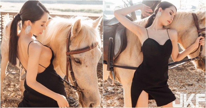 看過好多漂亮妹子跟馬的合照,今天這組讓人耳目一新啊!妹子看起來貴氣逼人、黑長直束起來,搭配她冷豔漂亮的五官,以及一身黑的小洋裝,高冷氣質迎面而來!跟馬的合照看起來又別有一番鳳味呢!最讓人注目的果然還是妹子外溢的胸脯了!又圓又挺…感覺馬都被他戳到啦!