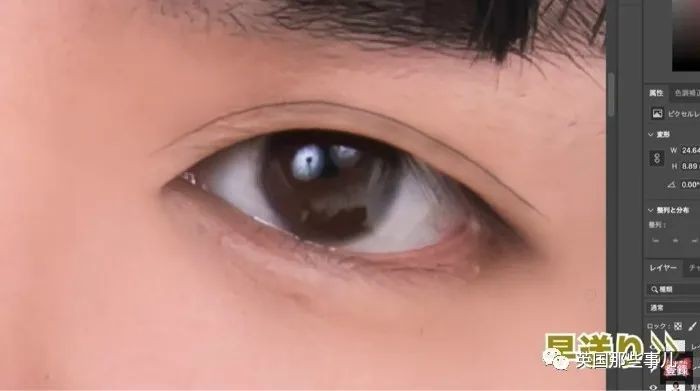 他用PS把眼皮一点点提起来,让上眼睑呈现出流畅的弧形,