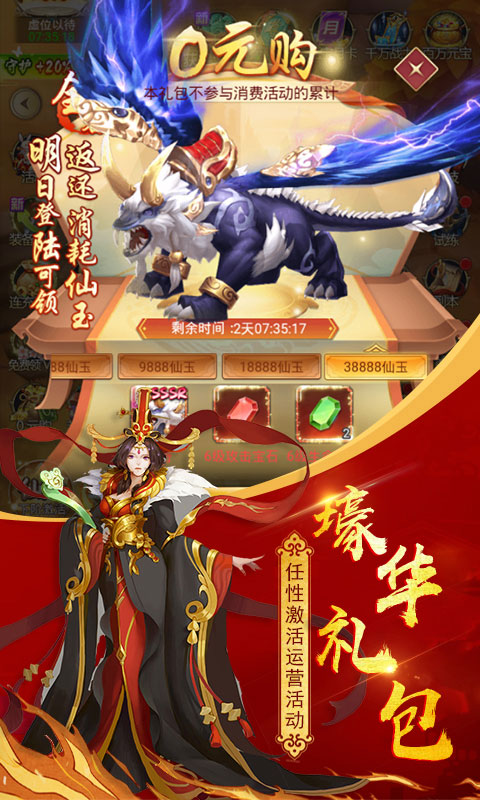 《朝歌封神录-神宠全免》是一款结合封神演义&山海经传说的神话仙侠游戏,上线福利赠送SVIP6,18888元宝,200w铜币,88抽奖券,登录可领总额3888元代金券真充,炫酷坐骑宠物幻化,每日免费领取代金券可激活充值活动和VIP经验;更有丰厚独家平台福利礼包助力,致力打造高自由度东方奇幻仙侠大世界,创新打造神将、骑宠策略搭配玩法,还有大跨服PVP排位赛,争夺最强霸主,畅享激战快感; 游戏画风结合山海神话与国风二次元画风,体验游戏如同遨游在山海神话的玄幻世界中,点神将,收妖兽,炼神器,披荆斩棘历万劫千难,羽化成仙封神留名。